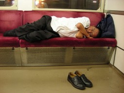 Sleeping-on-a-Train-in-Yokohama